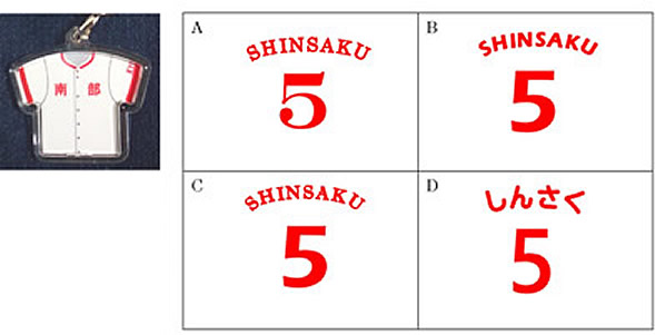 4. フォント(背番号と名前の組み合わせで、予め4種類(A,B,C,D)を用意しています。